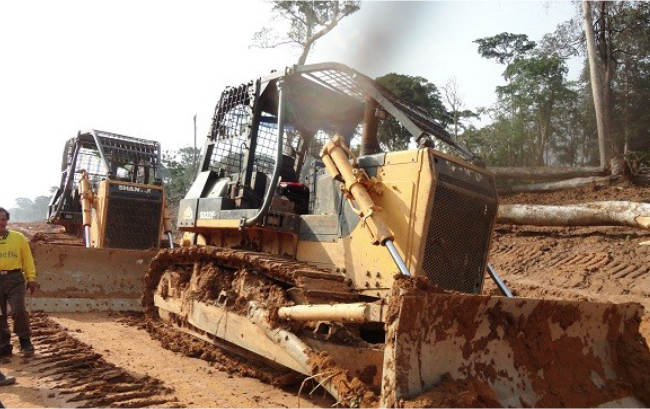 SD22F推土机作业于非洲某森林,,,,肩负蹊径清障,,,,大型木料托运等事情,,,,SD22F斩柴版推土机,,,,增添斩柴棚提升清静性,,,,后设置机械绞车,,,,牵引力强劲,,,,让施工更简朴。。。。。。。