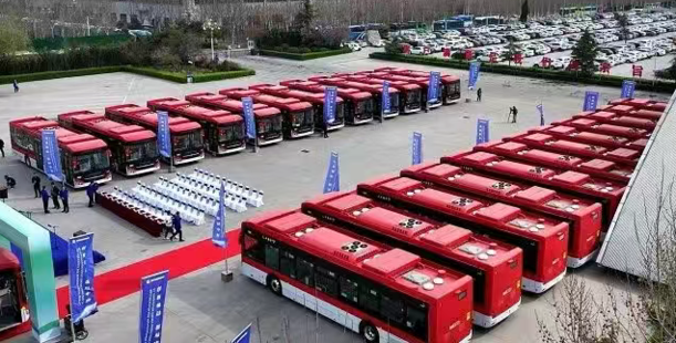 (山东重工旗下中通客车出口智利的895辆纯电动客车订单的首批车辆在山东聊城发车)